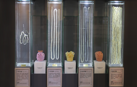 첫 번째 전시실에서는 기생충이란 무엇인지, 어떻게 인간과 동물의 몸속에서 살아가는지에 대한 기본적인 정보를 제공합니다. 인체에 기생하는 기생충들의 실물 표본과 함께, 현미경을 통해 직접 관찰할 수도 있습니다. 특히, 어린이들이 흥미를 느낄 수 있도록 다양한 영상과 인터랙티브 요소가 포함되어 있습니다.